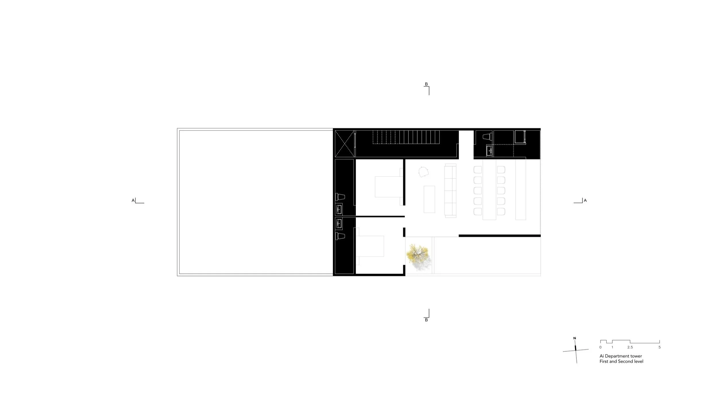 The height of the adjoining wall is high enough to hide the roofs from the neighbors but low enough for the mountain to lay on. AI tower, white and modern in nature, aims to be a space that evokes silence, a pause among the noisy and sometimes violent symphony of forms within any city.